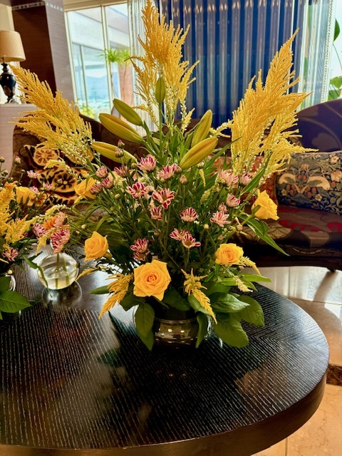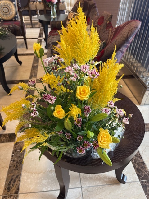 上の写真は先週のフラワーアレンジメントです。